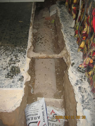 Realizamos todo tipo de canalizaciones en bajos y aceras, renovando todas las piezas necesarias para el correcto tránsito del agua hasta el colector general, y realizando los cerramientos necesarios tanto en chapado de acera, como chapado de gres o mármol en el interior de los bajos.