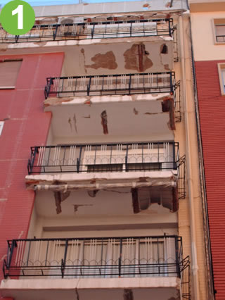 Este es un ejemplo de una fachada rehabilitada por nuestra empresa, en la imagen (1) pueden ver el estado en que se encontraba antes de nuestra intervención, y el resultado final una vez hecha la restauración imagen (2).